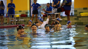 Wie in jedem Jahr war das Highlight die Rolandstaffel bei der jede Alterklasse in jedem Team vertreten sein musste und unter anderem auch in Kleidung geschwommen wurde.